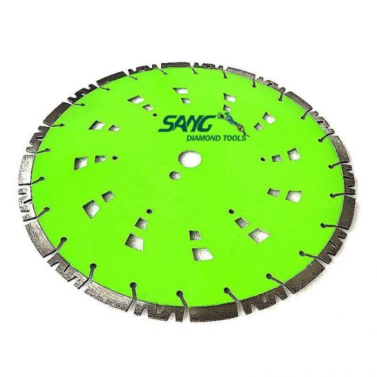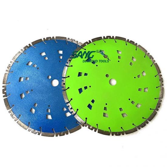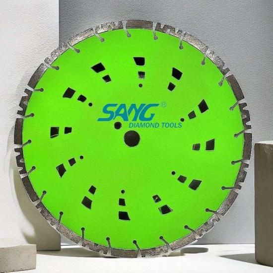 Spawana laserowo tarcza diamentowa o średnicy 350 mm, 400 mm lub 450 mm przeznaczona jest do cięcia betonu zbrojonego. Ostrza te zostały specjalnie zaprojektowane tak, aby wytrzymać trudy przecinania betonu z materiałami wzmacniającymi, takimi jak pręty zbrojeniowe lub siatka druciana. Wymiary „mm” odnoszą się do średnicy ostrza, przy czym 350 mm jest najmniejszą, a 450 mm największą.