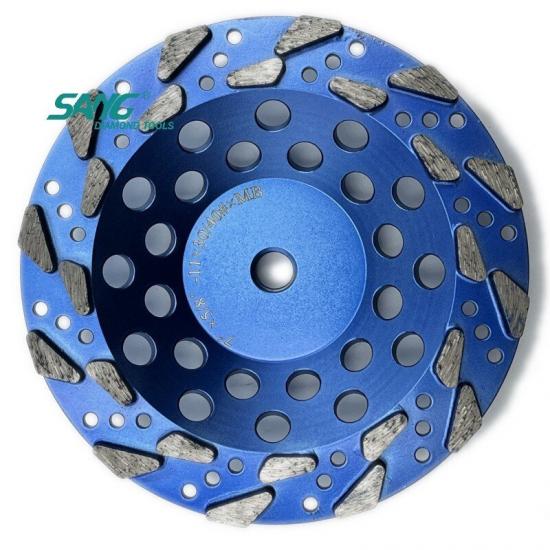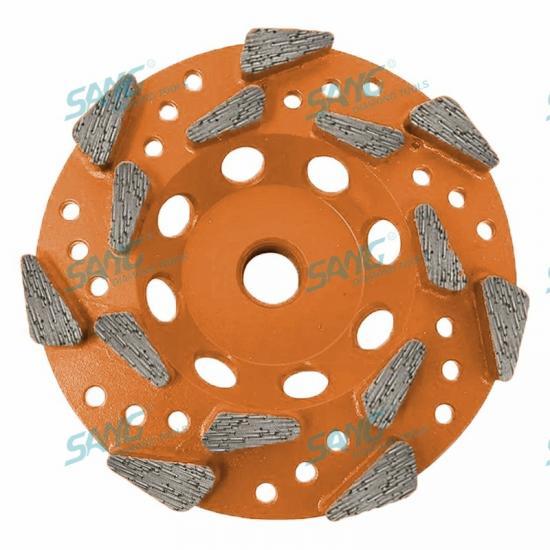 Śpiewał diamentowe koło kubka używany do uroku, ukosowania i szlifowania krawędzi kamienia i betonu oraz powierzchnia. ziarnistość: 36 #, 46 #, 60 #, 80 #, 100 #, 120 #, 200 # istnieje uniwersalne połączenie od 150 mm (22,23 / m14)