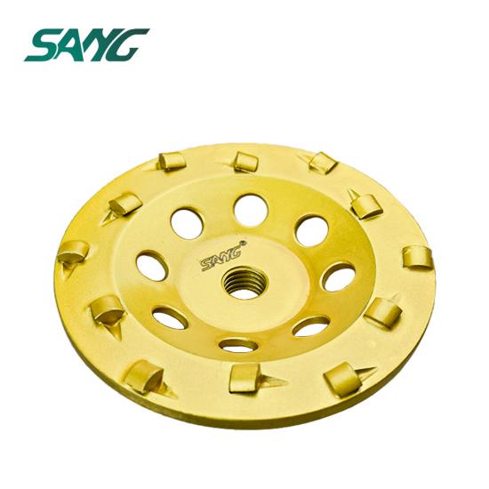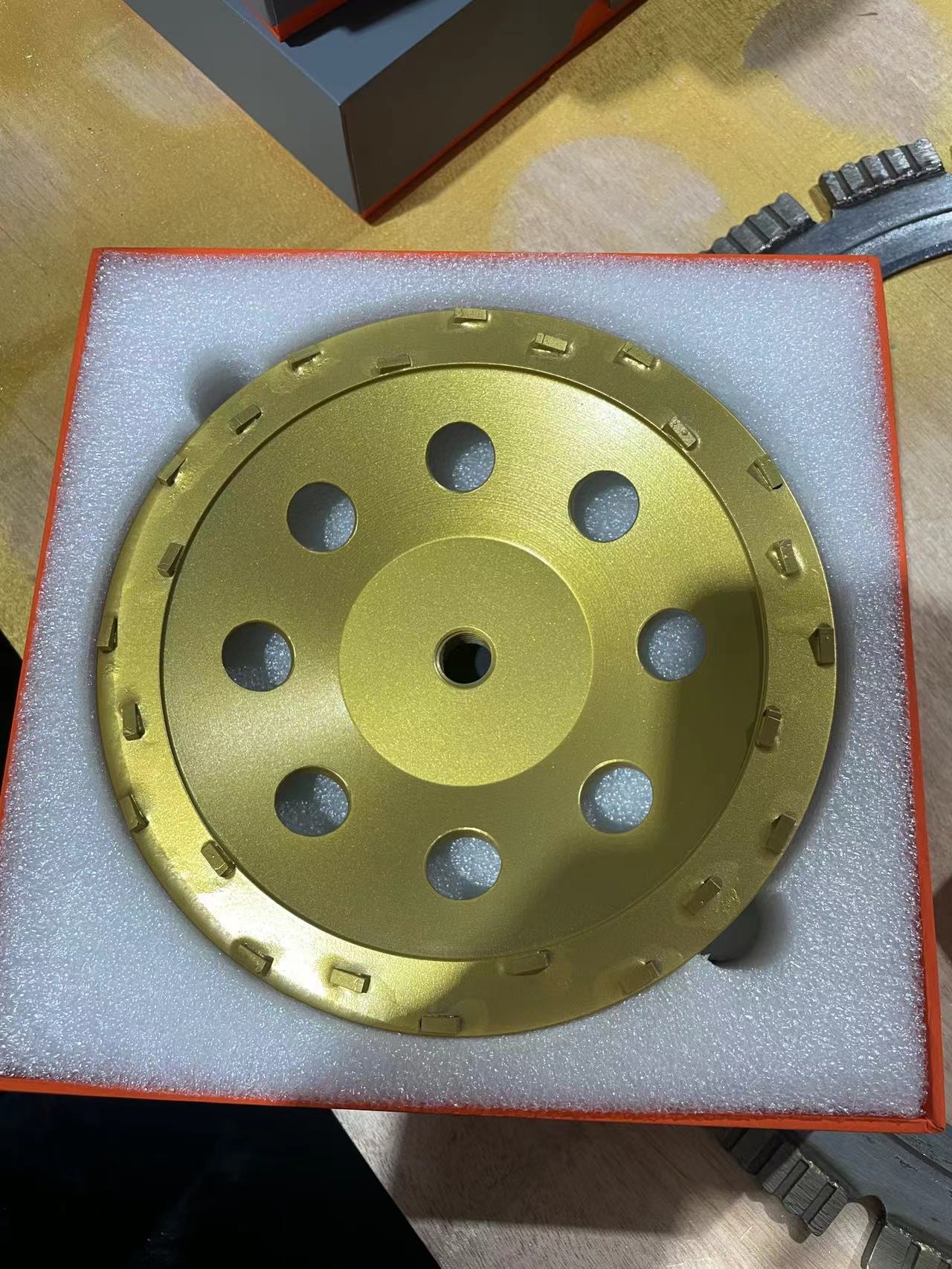 Śpiewał diamentowe koło kubka używany do uroku, ukosowania i szlifowania krawędzi kamienia i betonu oraz powierzchnia. ziarnistość: 36 #, 46 #, 60 #, 80 #, 100 #, 120 #, 200 # istnieje uniwersalne połączenie od 150 mm (22,23 / m14)