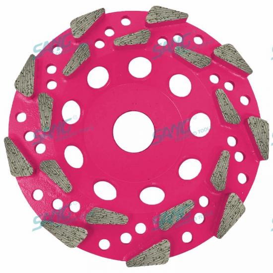 Śpiewał diamentowe koło kubka używany do uroku, ukosowania i szlifowania krawędzi kamienia i betonu oraz powierzchnia. ziarnistość: 36 #, 46 #, 60 #, 80 #, 100 #, 120 #, 200 # istnieje uniwersalne połączenie od 150 mm (22,23 / m14)
