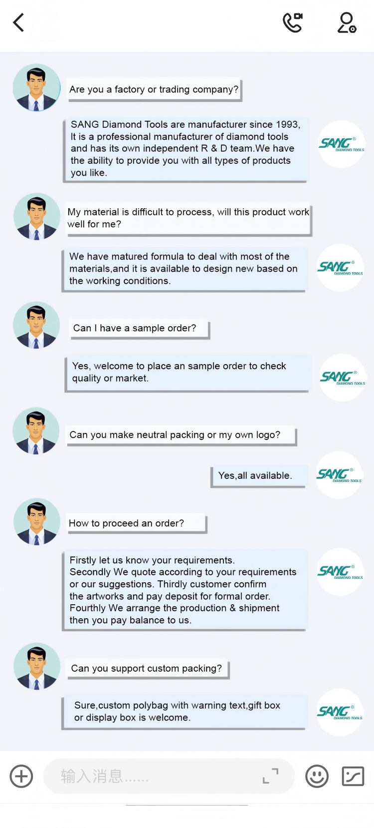W SANG Diamond Tools oferujemy usługi OEM i ODM dostosowane do Twoich maszyn i wymagań brandingowych. Skontaktuj się z nami już dziś, aby otrzymać wycenę, katalog lub próbkę.