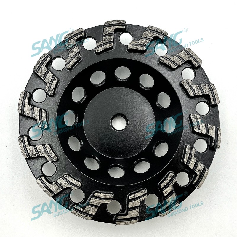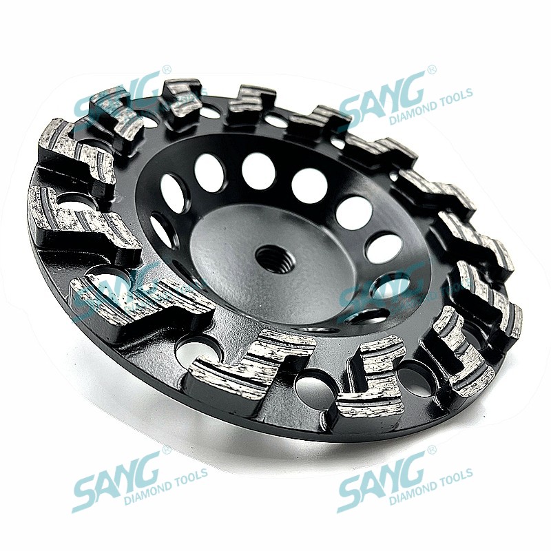 Śpiewał diamentowe koło kubka używany do uroku, ukosowania i szlifowania krawędzi kamienia i betonu oraz powierzchnia. ziarnistość: 36 #, 46 #, 60 #, 80 #, 100 #, 120 #, 200 # istnieje uniwersalne połączenie od 150 mm (22,23 / m14)